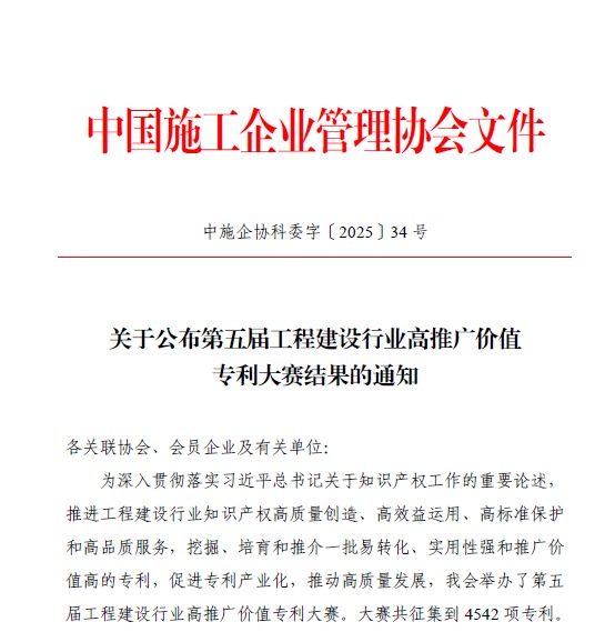 倍特建安榮獲第五屆工程建設行業(yè)高推廣價值專利大賽三等獎